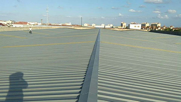 底漆:將聚合物室外工程專用防水涂料倒入攪拌桶中,用電動攪拌機(jī)攪拌均勻(約3-5分鐘),在彩鋼瓦片連接處10-20厘米寬處,螺釘周圍(半徑5-10厘米),彩鋼瓦與墻壁接觸處10-20厘米處,用毛刷刷防水涂料。厚度應(yīng)均勻一致。打底后,厚度應(yīng)保持在0.3毫米左右。修補(bǔ)后,可進(jìn)行下一道工序。